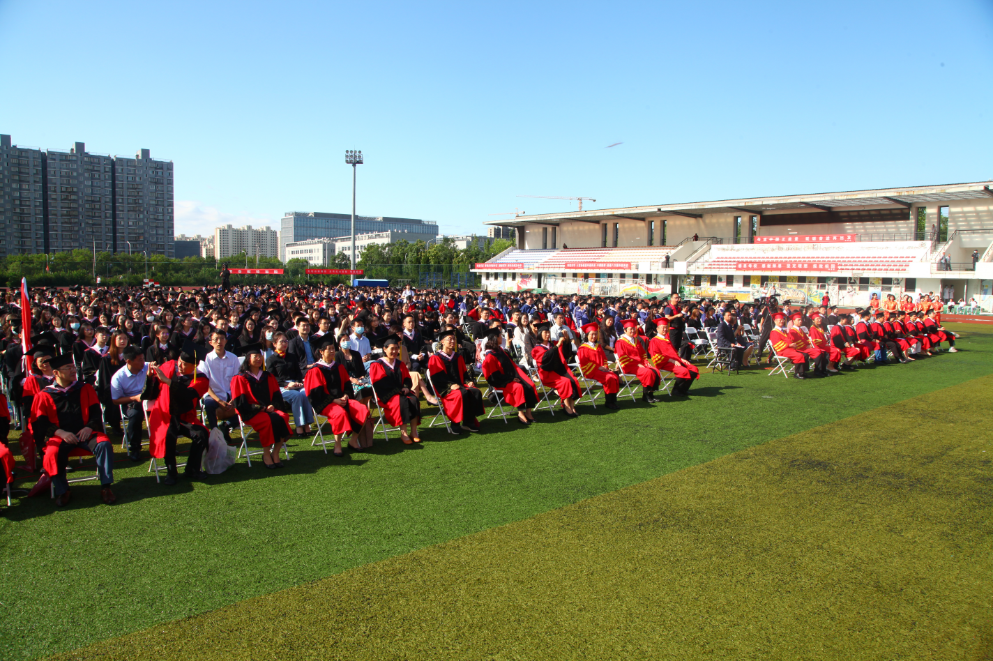 各院(系、部、所)院长(主任、所长)、党总支书记、教师代表、各职能部门负责人、2021届毕业生和部分2020届毕业生共同参加线下毕业典礼。未到场的毕业生、毕业生家长、非毕业年级在校生和校友等参加线上毕业典礼,点击量5万余人次。