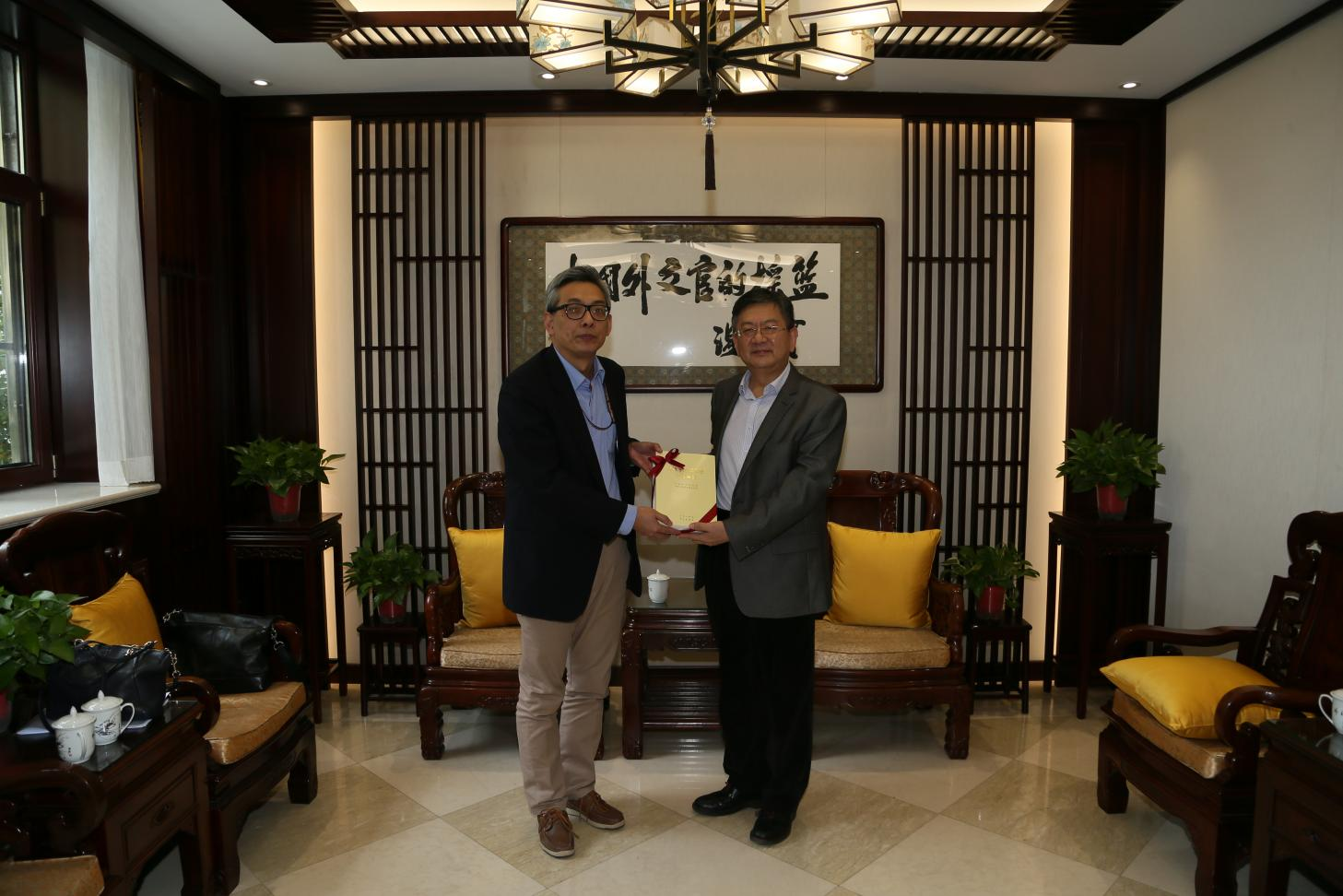 beat365徐坚院长、孙吉胜副院长会见了蔡伟司长一行,徐坚院长对部领导及部内各司局长期关心和支持学院发展表示感谢,对蔡伟校友、王彤校友回到母校和谢粤参赞表示欢迎。徐坚院长介绍了学院双一流建设情况、小语种和国际传播人才的培养规划。蔡伟司长一行对学院服务中国特色大国外交和培养输送优秀外交外事人才作出的贡献表示肯定。会谈结束后,蔡伟司长代表外交部向学院赠送《习近平外交思想学习纲要》等书籍,徐坚院长代表学校接受赠书。