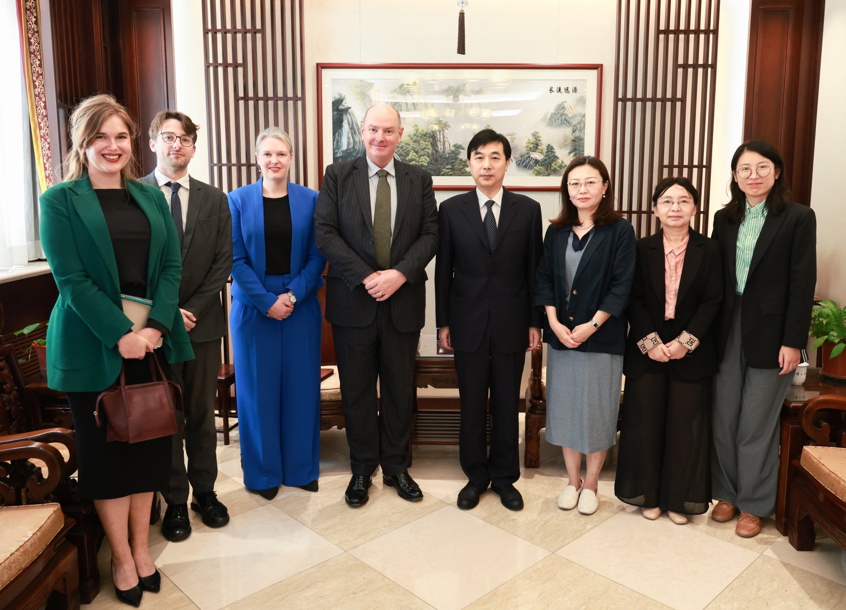 2025年9月29日,王帆院长会见新西兰驻华大使乔文博(Jonathan Austin)一行,亚洲研究所副所长杨悦教授、国际关系研究所聂文娟教授、外事办公室副主任王雨蒙等陪同会见。