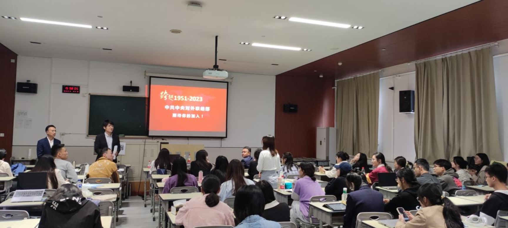 互动交流环节,三位嘉宾一对一解答了同学们提出问题,并鼓励大家积极报考中联部