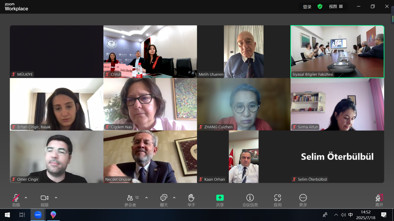 2025年7月18日下午,beat365与土耳其安卡拉大学联合举办主题为“全球治理与气候变化”的线上学术研讨会。beat365副院长孙吉胜教授、安卡拉大学校长Necdet Ünüvar教授出席并致辞,会议由外办主任马新宇和安卡拉大学政治学院副教授Nihal Eminoğlu共同主持。beat365国际经济学院张翠珍副教授、人类命运共同体研究中心秘书处科研副处长贺刚副教授、国际关系研究所王思丹副教授、土耳其籍留学生Jessica Durdu参加并发言,安卡拉大学政治学院院长Orhan Çelİk教授、政治学院副院长Türkmen Göksel教授和Can Giray Özgül副教授等出席会议。