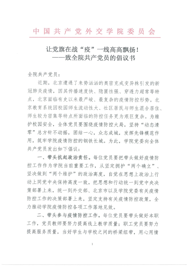 让党旗在战“疫”一线高高飘扬!——致全院共产党员的倡议书