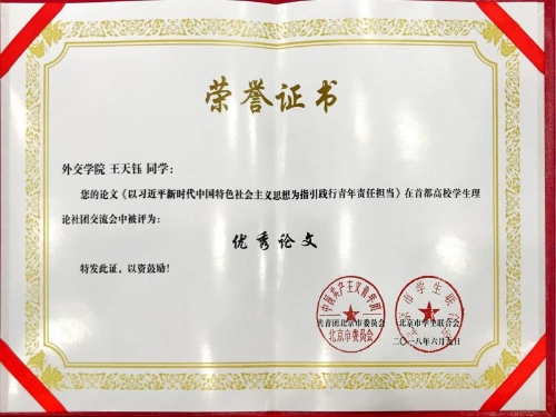 6月9日,由共青团北京市委、中国人民大学、北京市学联主办的“习近平新时代中国特色社会主义思想与青年信仰”首都高校学生理论社团交流会暨第19届“人北清师”马克思主义学院博士生论坛在中国人民大学举行。我校知行学会荣获“首都高校学习习近平新时代中国特色社会主义思想十佳学生理论社团”称号。 本次论坛共收到来自北京市共52个高校学生理论社团报送的论文,经专家评定,共评出优秀论文30篇。