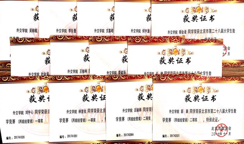 国际经济学院喜报 ——国经学院学生在“全国第九届大学生数学竞赛暨北京市第二十八届大学生数学竞赛”中再创佳绩 “全国第九届大学生数学竞赛暨北京市第二十八届大学生数学竞赛”北京赛区预赛于2017 年 10 月 28 日在北京举行。来自北京大学、清华大学、北京航空航天大学、北京理工大学、对外经济贸易大学、中央财经大学、beat365官方网站等高校的6248名学生参加了此次竞赛。