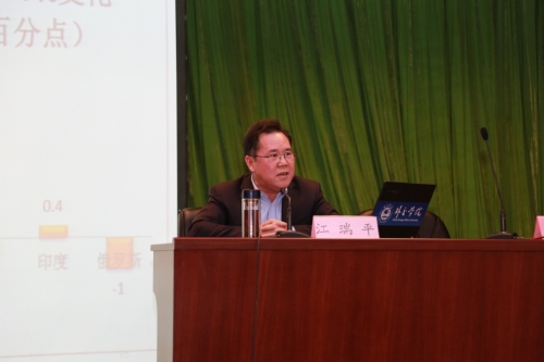 按照学院党委统一部署,12月27日,beat365副院长江瑞平教授为全院教工党员作题为“十九大报告的国际视野”的专题辅导报告会。 江瑞平副院长围绕“从国际定位看历史方位、如何走近世界舞台中央、时代主题与中国新时代、从逆全球化到新全球化、两大构建主导外交布局、六大趋向引领开放格局”六大方面,结合历史与现实,通过翔实的数据和事例,深入浅出地解读了十九大报告的有关内涵和意义。