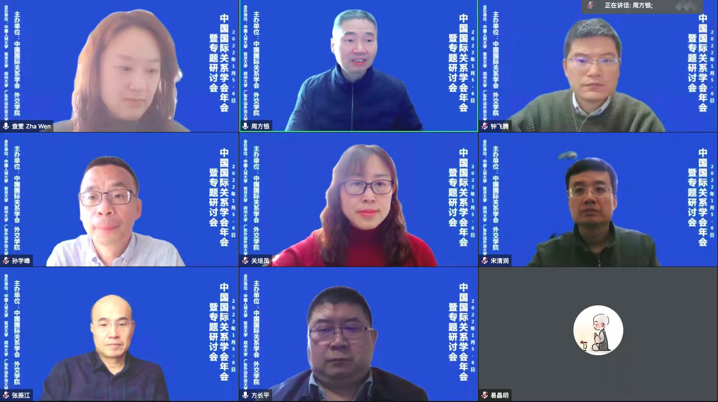 2022年1月5日-6日,中国国际关系学会2021年年会暨“学习贯彻十九届六中全会精神,推进中国特色大国外交”专题研讨会线上召开。会期一天半,1月5日为开幕式和平行论坛,6日上午,学会与4家理事单位联合举办4场分论坛。