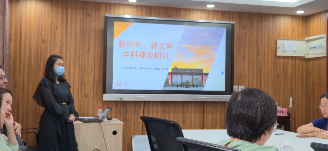 付韶军老师则从新时代新文科建设对学生素质的要求出发,提出应着重增强学生的数据分析能力、编程能力、解决实际问题的能力以及现代信息及时有效结合的能力。他结合教研室目前开设的相关课程、组织的比赛,阐述了进一步发展的设想,并针对即将开设的新课程《数字经济学》,分享了自己的开课思路与规划。