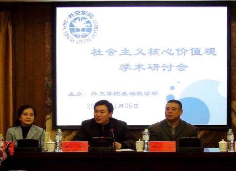 研讨会的第二阶段由基础教学部教师分别作了主题发言。张迅副教授围绕社会主义核心价值观的时代特征与现代意义,对社会主义核心价值观进行分析阐释。他认为社会主义核心价值观会引领中国未来十年乃至三十年的发展,这是因为,第一,作为社会主义核心价值观,它不单纯是有关社会生活的道德行为及其规范,更涵盖确定国家社会未来发展的现代理念;第二,国家的现代化建设,是高度复杂的社会系统,需要整体性的理念构想,而社会主义核心价值观的提出,显示了从国家到社会,再到个人的全面系统化的现代思想认识;第三,社会主义核心价值观的提出体现了进一步的思想解放,其中包含的很多概念在以往很少以这种方式被写入纲领性文献;第四,社会主义核心价值观是对中国梦的一个十分鲜明而具体的描述。 余科杰教授结合十八届四中全会关于全面推进依法治国若干重大问题的决定,对社会主义核心价值观内涵中的法治问题作了深入剖析并发表了独到见解。他阐释了三个方面的问题:一是十八届四中全会关于全面推进依法治国若干重大问题的决定具有里程碑的意义;二是中国的法治建设进程中仍存在很多不足;三是关于一党领导和依法治国的关系,指出一党领导和依法治国并不矛盾。 随后,基础教学部其他教师也分别从各学科教学实际,畅谈了倡导和培育社会主义核心价值观的意义,他们发言的主题分别为:唐瀚老师的《关于“知行合一”的深层方法论启示——读<青年要自觉践行社会主义核心价值观>有所思》;钟媛媛老师的《将社会主义核心价值观融入“基础课”教学的几点思考》;张明霞老师的《如何在生活中践行社会主义核心价值观 》;宗敏老师的《人本主义心理学视角下的大学生社会主义核心价值观教育》;王莉老师的《浅析社会主义核心价值观与体育之关系》;郭凤英老师的《立足小我辐射社会——社会主义核心价值观之我见》。此外,2013级、2014级科社专业研究生也分别谈了学习感想。 在研讨会最后,基础教学部主任王立教授作了总结发言。他认为这次研讨会开得非常好,研讨内容丰富、角度新颖、效果显著。并指出培养具有坚定的马克思主义信仰的外交外事人才是基础教学部教师义不容辞的责任和义务,希望基础教学部的所有老师,深化相关方面的研究,并将研究成果带到实际教学工作中,使之转化,得到发扬。 会议在隆重而热烈的氛围中结束。此次研讨会反响良好,参会人员收获良多。