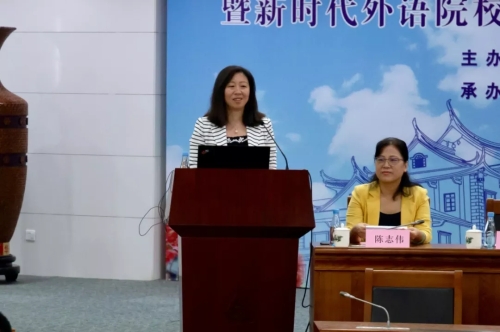 本次会议中,北京外国语大学副校长孙有中教授、上海外国语大学英语学院院长查明建教授、北京外国语大学英语学院院长张剑教授、北京第二外国语学院英语学院副院长龙云教授、国防科技大学国际关系学院王波教授、华东师范大学外语学院英语系/翻译系系主任陈弘教授、上海外国语大学英语学院常务副院长王欣教授、大连外国语大学英语学院院长吕春媚教授、广西师范大学外国语学院院长谢世坚教授、厦门大学外文学院英语系系主任杨士焯教授、黑龙江外国语学院英语系系主任郭玉鑫副教授分别围绕新时代外语院校英语专业学科发展与改革、教学理念与内涵、课程体系新路径探索、教学模式理论与实践、能力发展模式探索等主题进行发言。