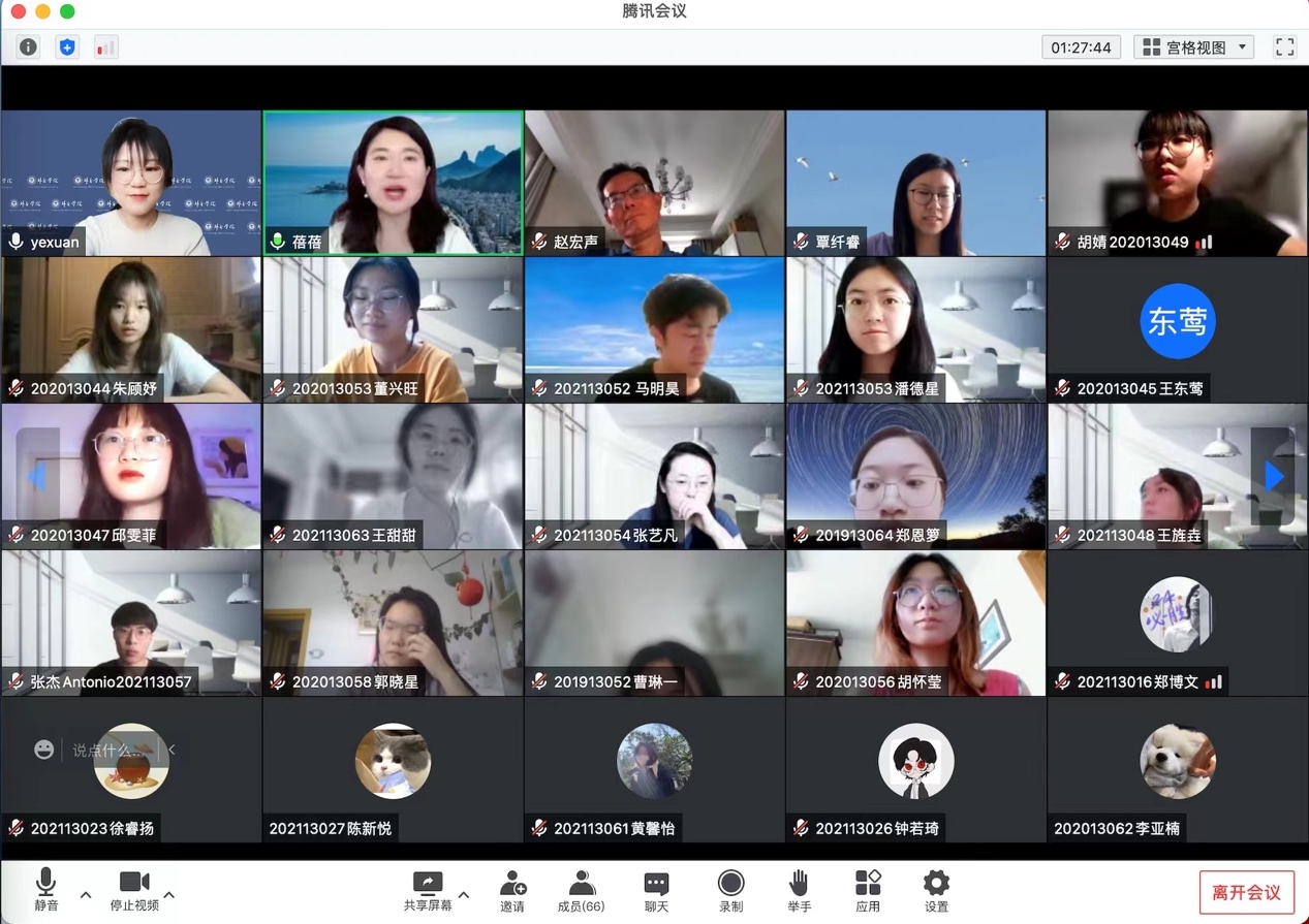 何老师在讲座中通过“以情动人、以爱感人、以理服人”这三个主题,细致地讲述了关于“如何讲好新时代的中国故事”的事例,展现中国西语前辈们的风骨,分享了关于温暖和爱的故事,也让我们了解了如何让外国友人来说中国故事,以及借助他国主流媒体来宣传中国正面形象。通过宏大叙事和细节挖掘的结合,真正打破西方媒体长期垄断外国群众接收信息的渠道的这一现象,让受众听见真正的中国声音。何老师还向同学们展示了“从海南到哈瓦那”的文化之旅,相似的风景和生活方式,两个不同的国家在对比中发生文化的碰撞,在碰撞中拉近了彼此之间的距离。正如习总书记所言:“要围绕中国精神、中国价值、中国力量,更好地推动中华文化走出去,以文载道、以文传声、以文化人,向世界阐释推介更多具有中国特色、体现中国精神、蕴藏中国智慧的优秀文化。”